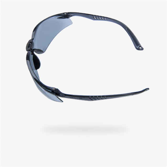 Lente con despliegue lateral y patillas ergonómicas que aseguran un ajustado calce a la cara.